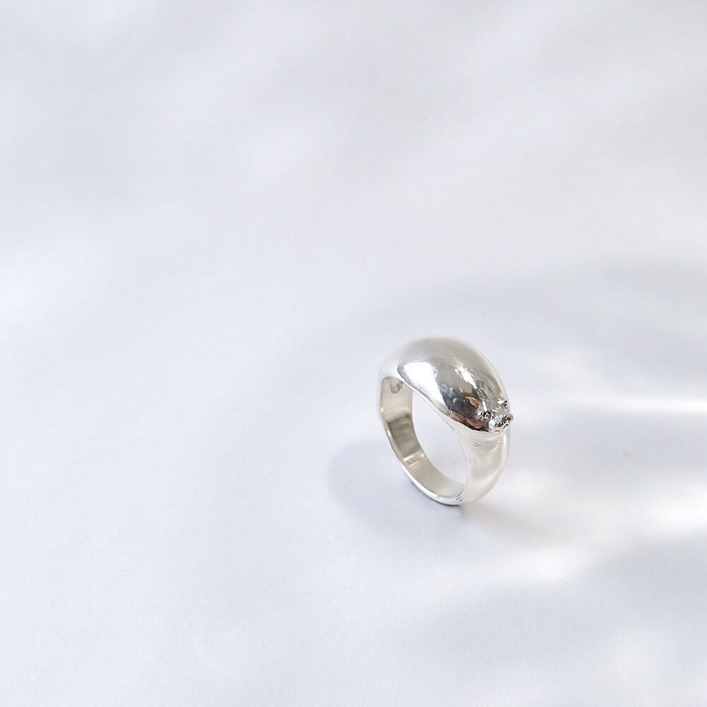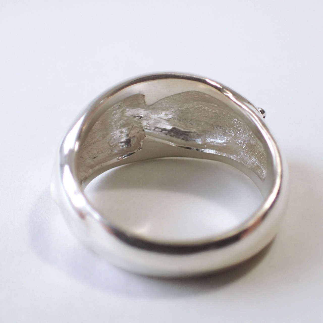 一見、月形甲丸といわれる、ころんとしたボリューム感のあるシンプルなリングです。