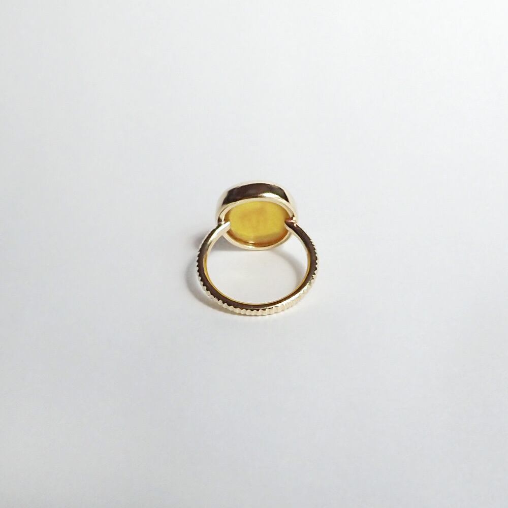 夕日に照らされた金色の草原をイメージした黄色い背景の中にたたずむキリンの姿がかわいいリングです。