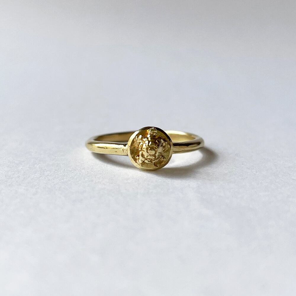 そんな思いから生み出された、宝石のように指輪の上にちょこんとのったケヅメリクガメをちいさくちいさく作りました。